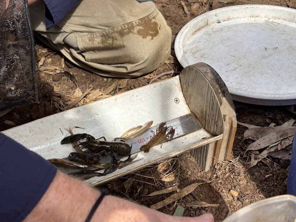 A Freshwater Catfish, a native species but one that occurs naturally within the Murray-Darling Basin, was also captured; while five non-native species were also captured or observed, including Gambusia, Carp, Redfin Perch, Rainbow Trout and Goldfish or also found as part of the survey.